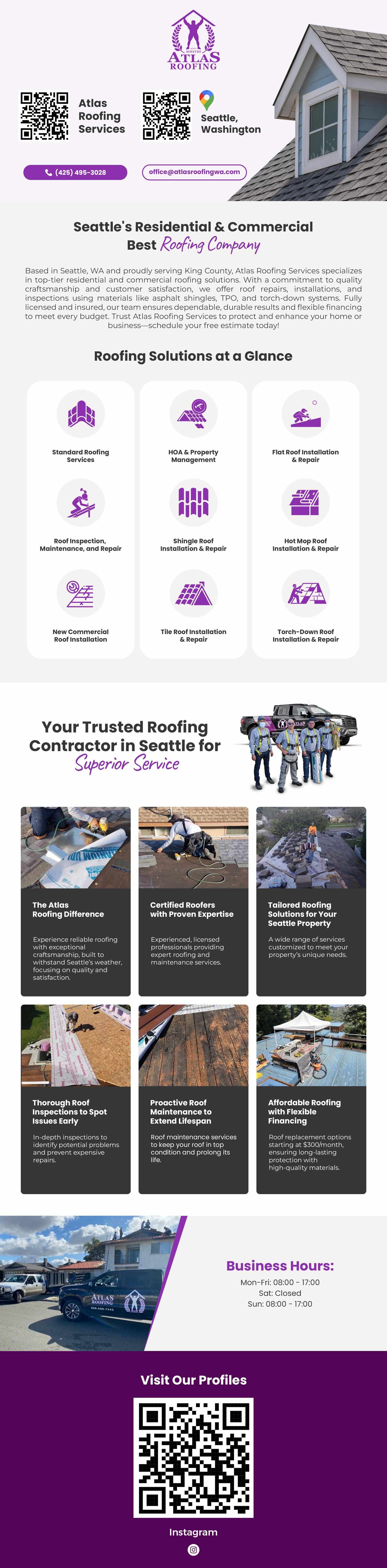 Atlas Roofing Services stands as a beacon of quality in Seattle, Washington, providing residents with unparalleled tile roof installation and repair services. As an esteemed roofing contractor in Seattle, we specialize in crafting solutions tailored to withstand Seattle's unique climate conditions. Our team brings expertise, precision, and unwavering dedication to every project, ensuring that each roof not only looks great but also provides long-lasting protection against the elements. We focus on using superior materials combined with advanced techniques to deliver finishes that impress even the most discerning clients. At Atlas Roofing Services, we are committed to excellence through every shingle laid down and every tile fitted into place. When you entrust your roofing needs to us, you can rest assured you're working with a contractor who values integrity and efficiency as much as you do—guaranteeing peace of mind alongside an impeccable new or restored roof over your head.